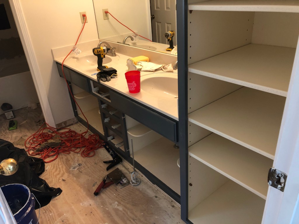 In the meantime, we wait. We don’t know what will happen with the vanity, so we can’t install the flooring or make an progress with the bathroom. I’m 100% certain there will be a part 3 to this series, I’m just not sure when. I’ll make sure to tell you when to check back for all the dramatic updates.