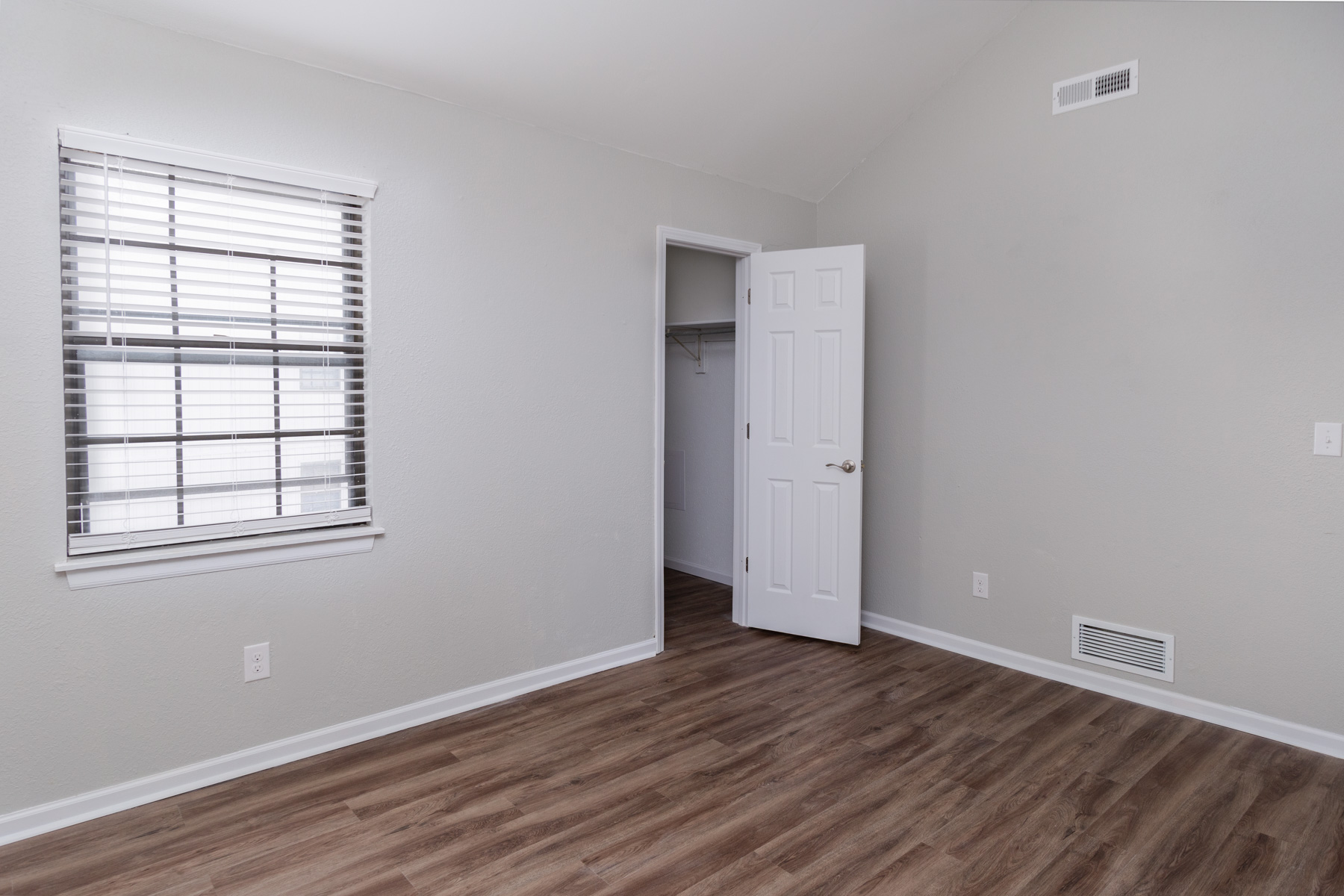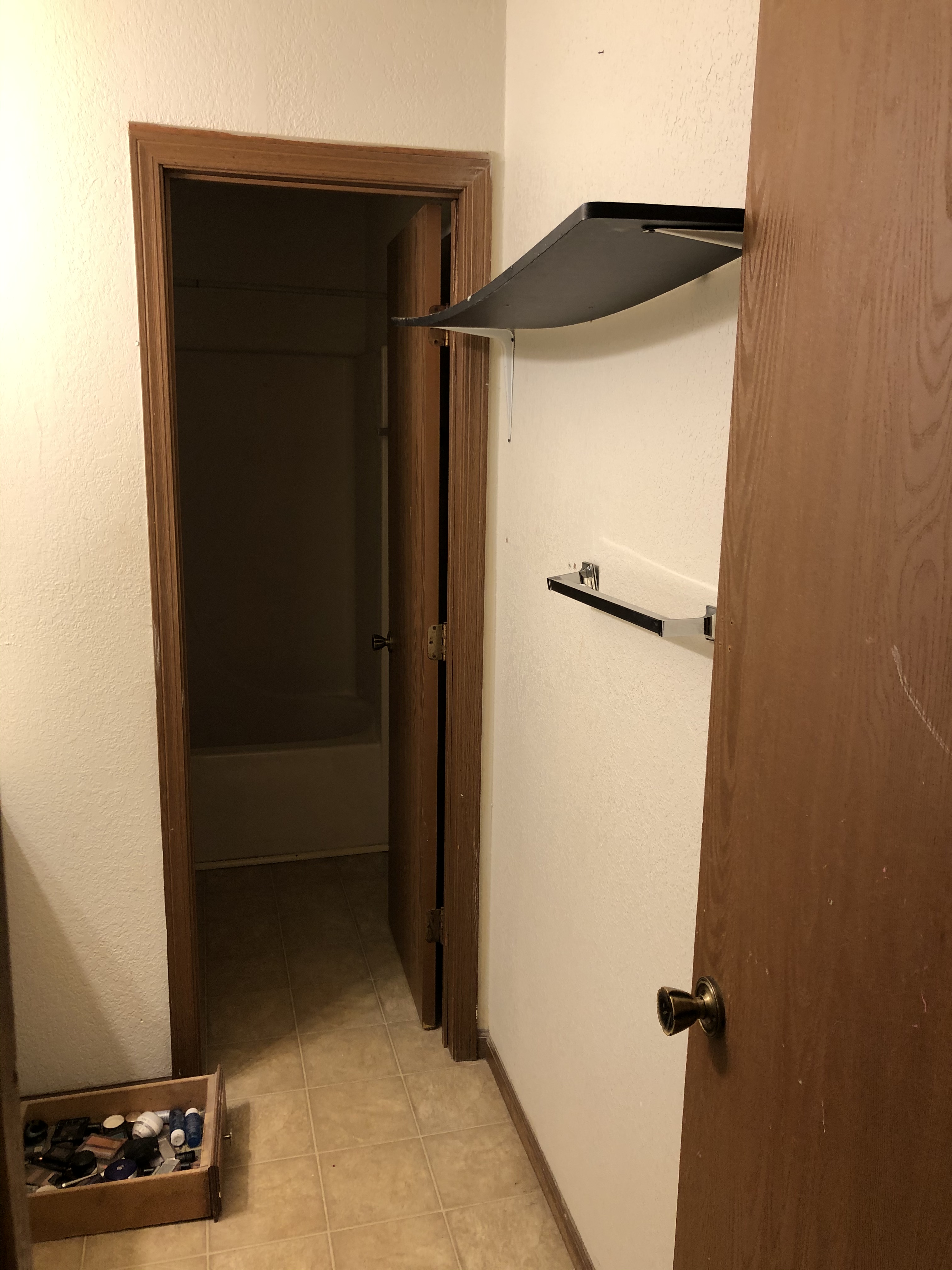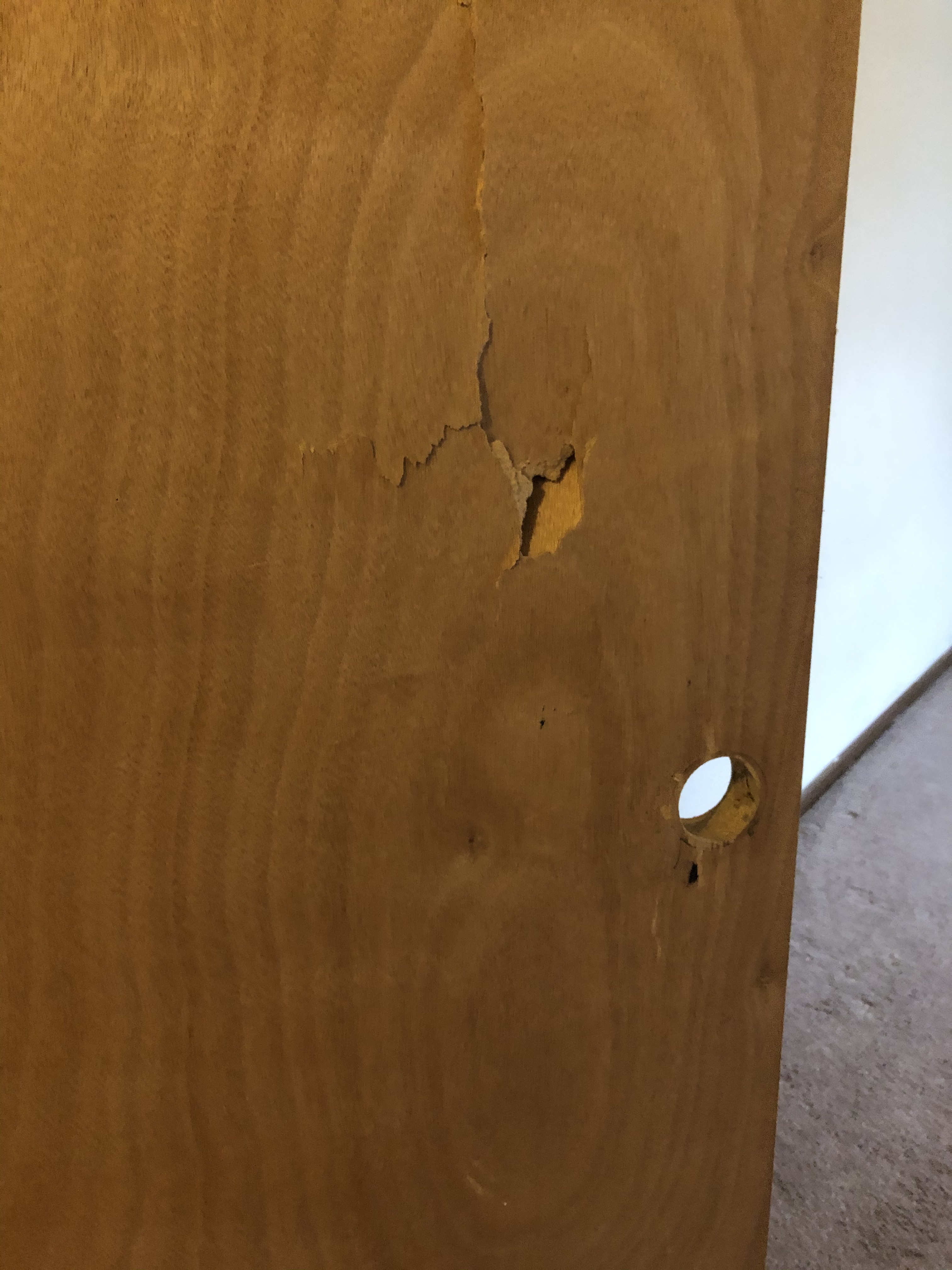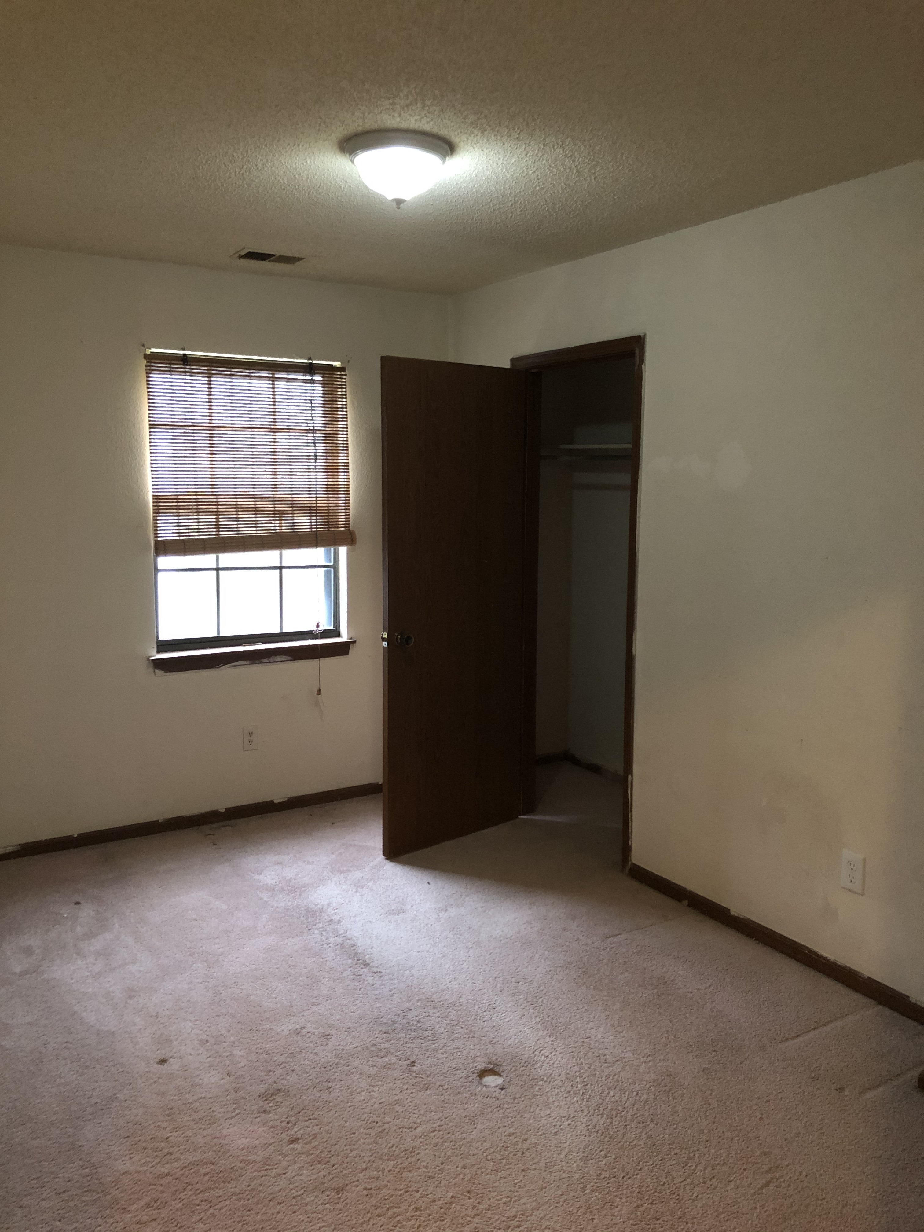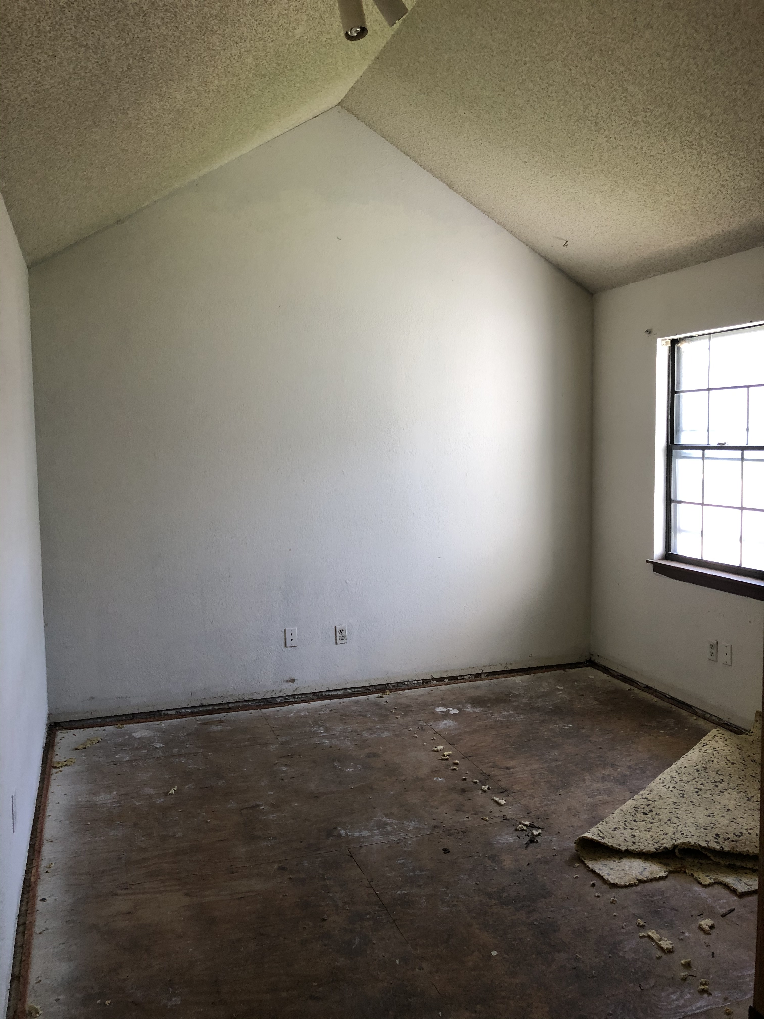 Alternate title – should we be concerned about the hooks on the outside of the doors…? The bedrooms really weren’t that bad. I mean, apart from some very, very deep stains in the carpet and the fact that clearly every wall and door had been beaten to smithereens, they really weren’t bad. Oh, and the hooks on the exteriors of all the doors to keep them shut from the outside. (Yes, we reported it to the appropriate authorities. No, we had no reason to suspect anything the whole time they were our tenant. No, no one we told cared. Yes, we’ve seen worse… like the time I’m 98% certain we walked through a serial killer’s unit while touring a property we were interested in buying. But that’s a story for another day.) Did I mention humans are weird?
