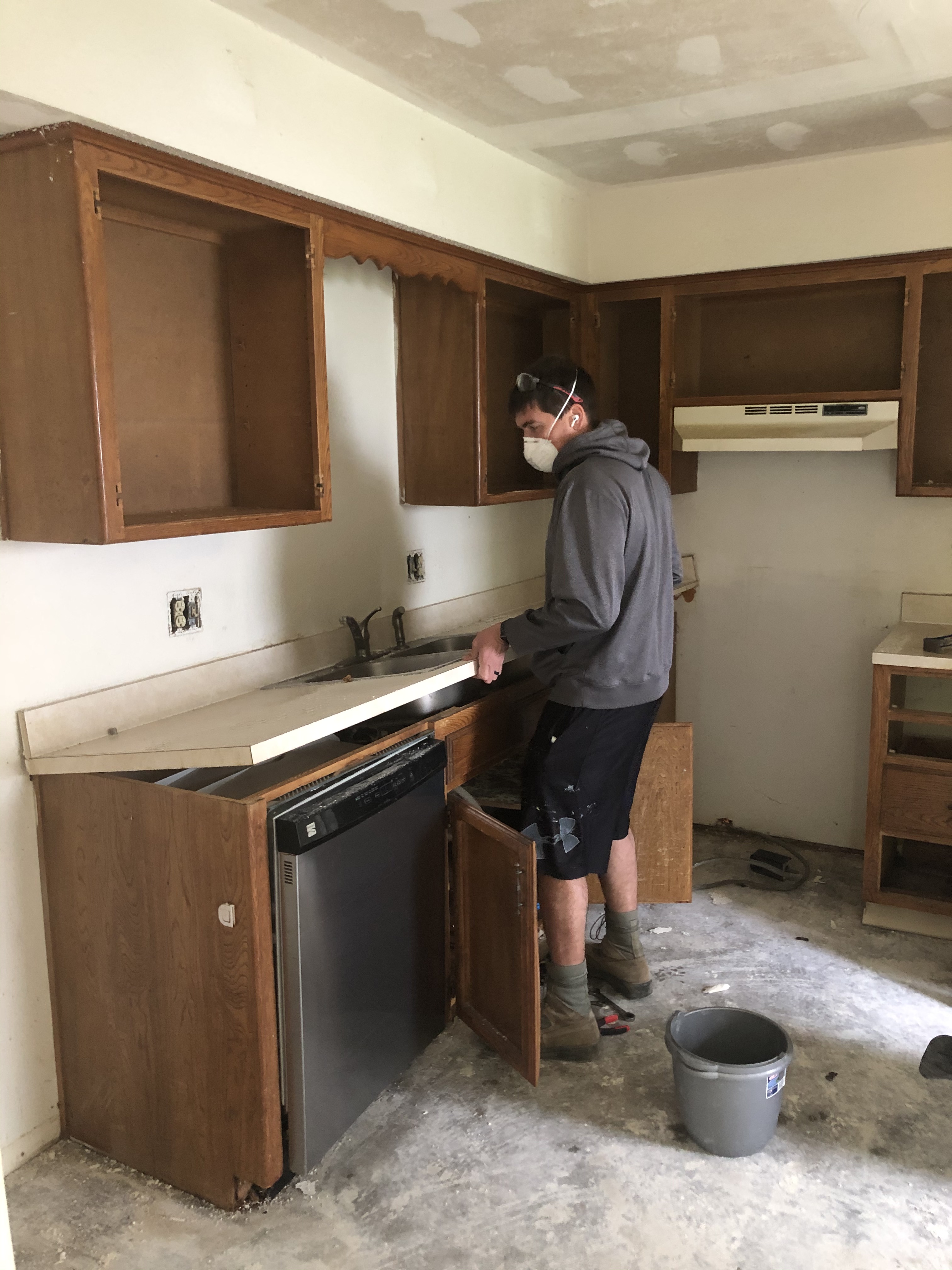 In the kitchen we found it all – grease, stains, moldy appliances, enough random spice packets to start your own market. The smell from the kitchen sink was enough to take down a grown man (trust me, although he’ll never admit it, I think Grayson almost succumbed). But alas, no roaches. At least there’s that.